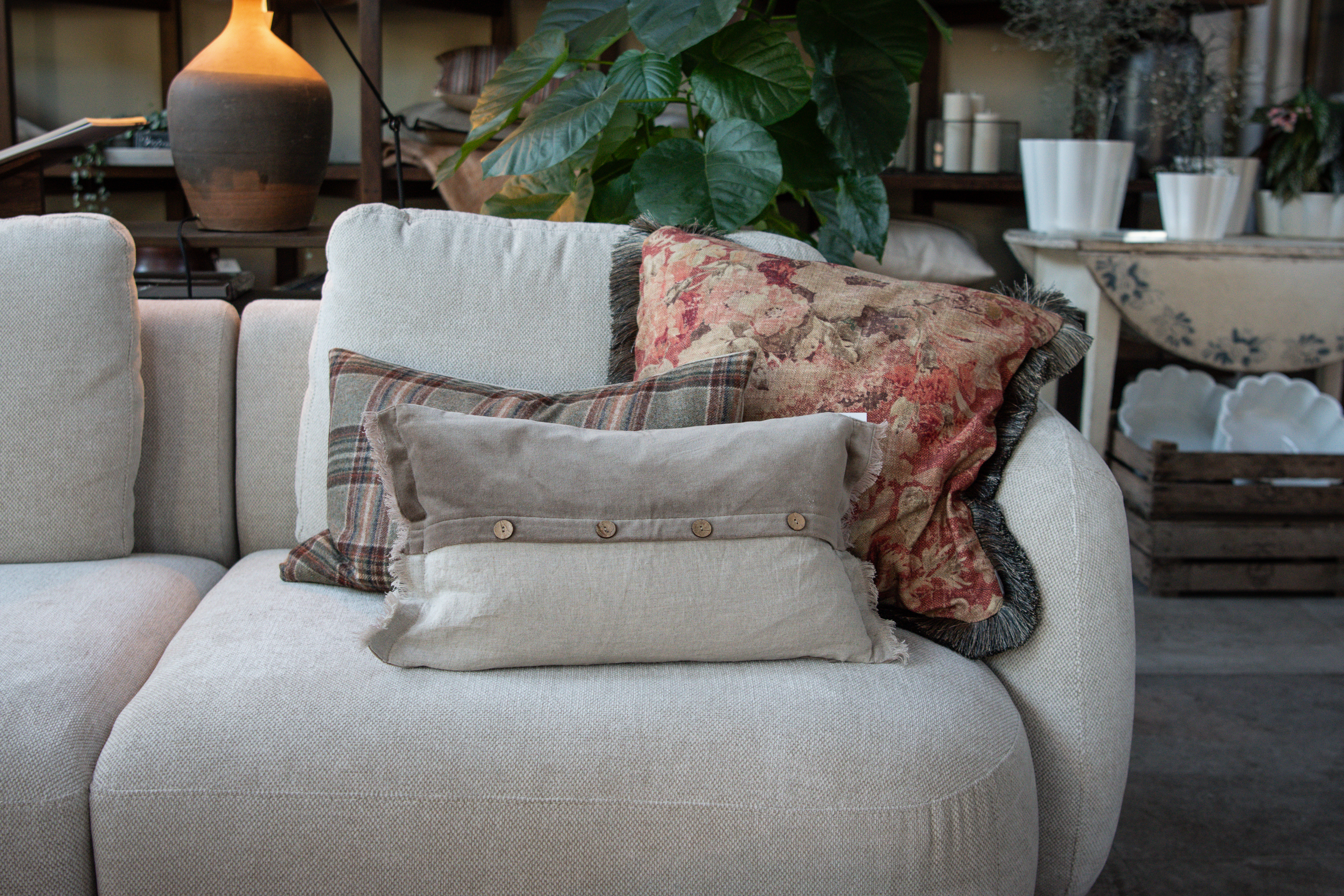 Kuddfodral Rosewood Flower m grå fransar 40x60
